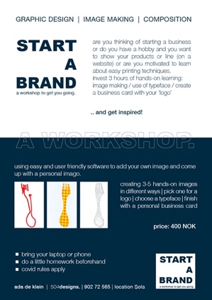 I organized this workshop in Norway. An introduction to graphic design with a hands-on doityourself / make your own logo with a personal artistic touch. If you are interested in doing such a thing, let me know. give me a call, text or send an email.
